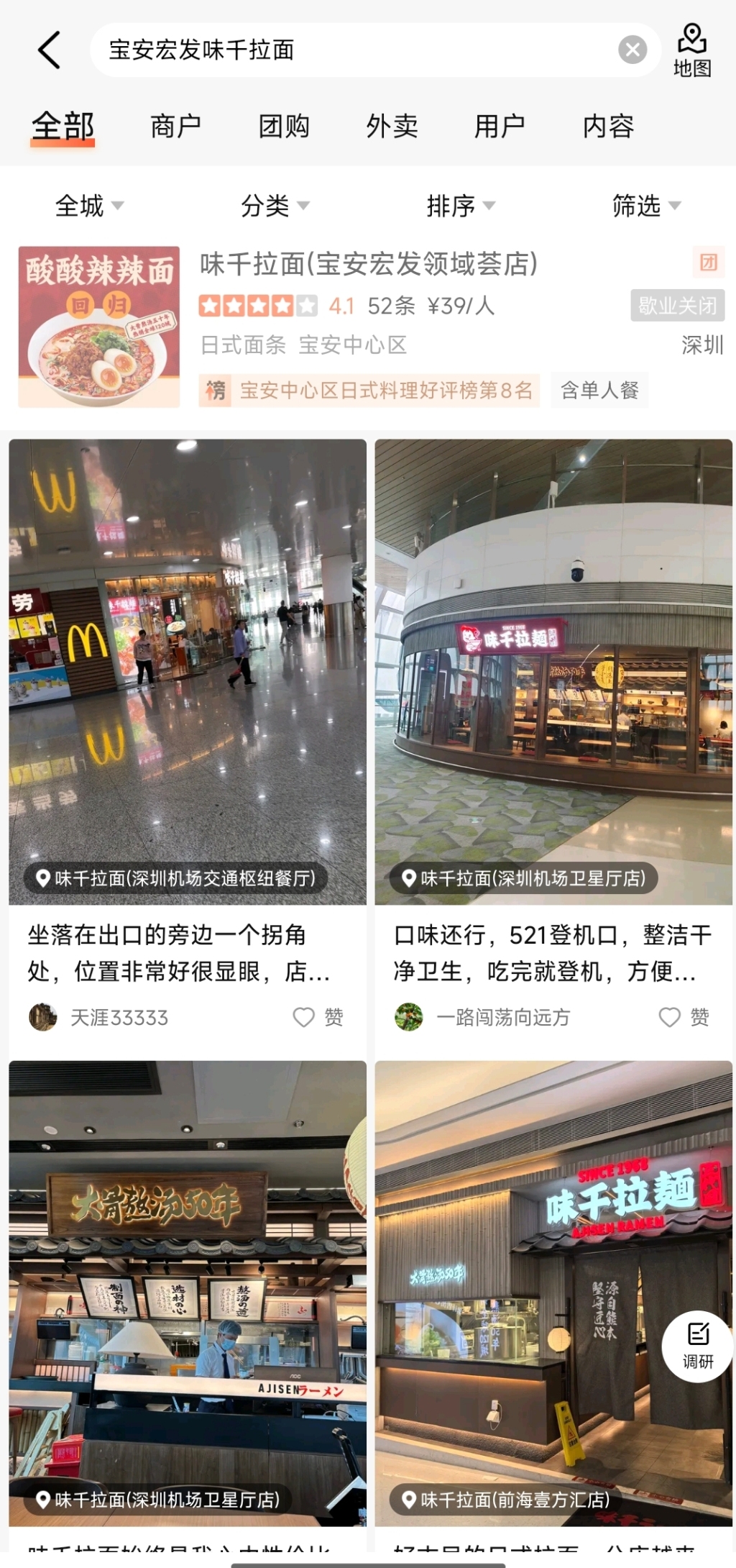 10月14日下午,记者通过大众点评搜索“味千拉面宝安宏发领域荟店”显示,该店铺已经处于“歇业关闭”状态。