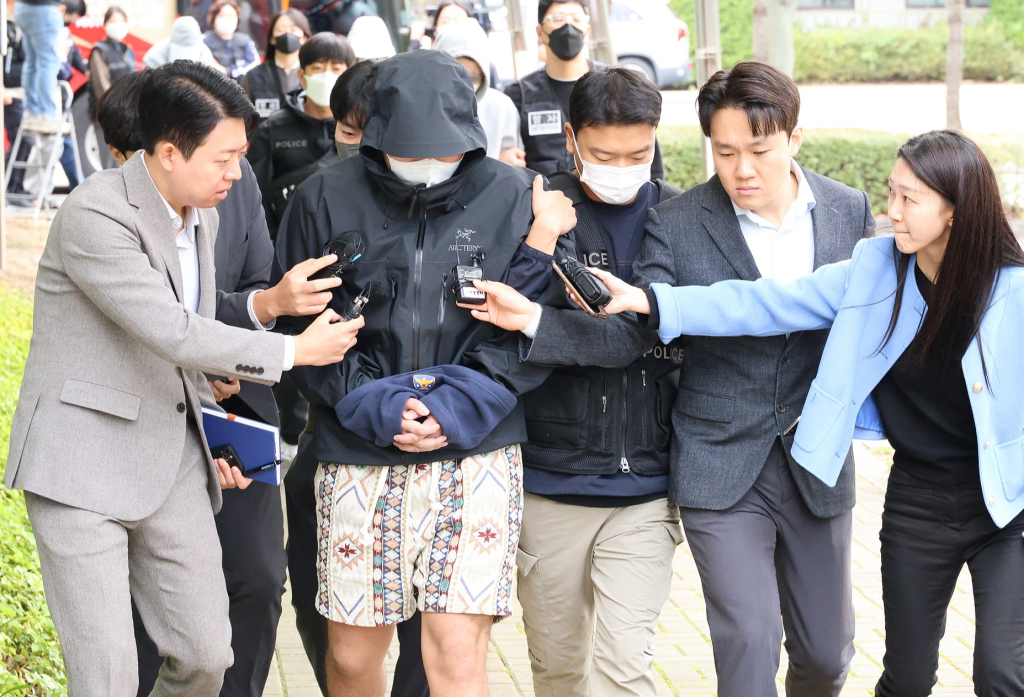 当地时间2025年10月20日,韩国忠清南道洪城,涉嫌诈骗的柬埔寨遣返嫌疑人前往大田地方法院洪城分院接受逮捕前嫌疑人审讯(逮捕令实质审查)。视觉中国 图