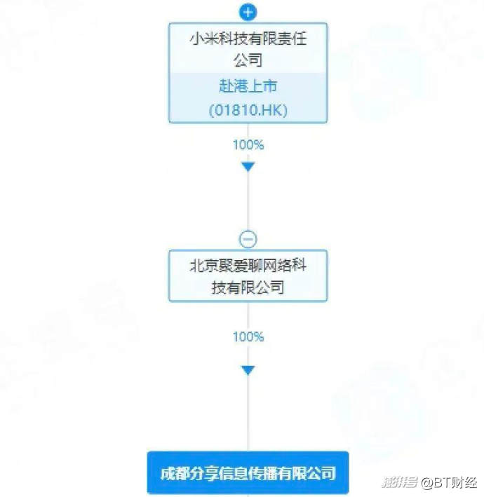 据应用商城页面显示,围观短剧APP归属于成都分享信息传播有限公司,其注册资本为1000万元。通过天眼查股权穿透可以发现,成都分享信息传播有限公司由北京聚爱聊网络科技有限公司100%持股,后者则由小米科技有限责任公司全资持有。王川是法定代表人,而王川同时又是小米科技联合创始人、高级副总裁。股权信息可以清楚显示,围观短剧就是小米全资推出的短剧APP。