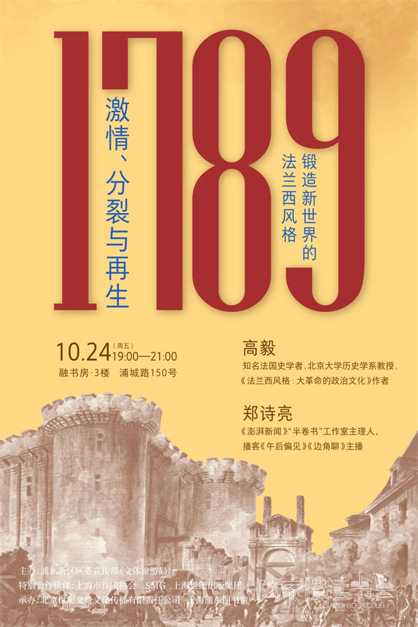 1789年,不是一个遥远的故事,它是我们理解今日世界的一把钥匙,也是审视当下自身处境的一面镜子。10月24日晚,我们邀请到了《法兰西风格:大革命的政治文化》作者、北京大学法国史学者高毅教授与《澎湃新闻》“半卷书”工作室主理人郑诗亮共同探讨大革命时期锻造新世界的法兰西风格,在历史的坐标中,找寻自己的定位。