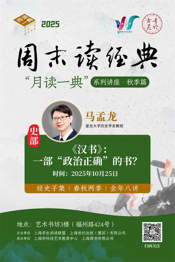 在中国古代,《汉书》的影响要远远超越《史记》。造成这一局面的重要原因,是东汉以后人们普遍认为《汉书》的政治立场要比《史记》更为“正确”。如何理解《汉书》的政治正确性?相比于《史记》,《汉书》的“政治正确”体现在哪里?《汉书》的政治正确是否意味着它是一部全面维护西汉王朝的书?10月25日,复旦大学马孟龙教授将向小读者们一一作答。