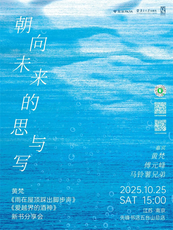 当一位诗人在理工的严谨与文学的感性之间行走,他的笔下会诞生怎样的文字?诗人黄梵将带着他的两部新作,与我们分享他的答案。10月25日,我们邀请诗人黄梵、傅元峰、马铃薯兄弟来到先锋书店五台山总店,一同走入黄梵的诗歌世界,在对话与诵读中,感受词语的碰撞,跟随越界酒神的脚步,聆听雨在屋顶踩出的脚步声。