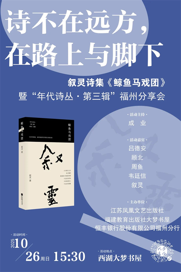 福州|诗不在远方,在路上或脚下——叙灵诗集《鲸鱼马戏团》暨“年代诗丛·第三辑”福州分享会