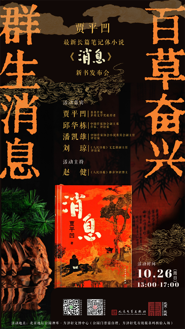 北京|百草奋兴,群生消息——贾平凹最新长篇笔记体小说《消息》新书发布会
