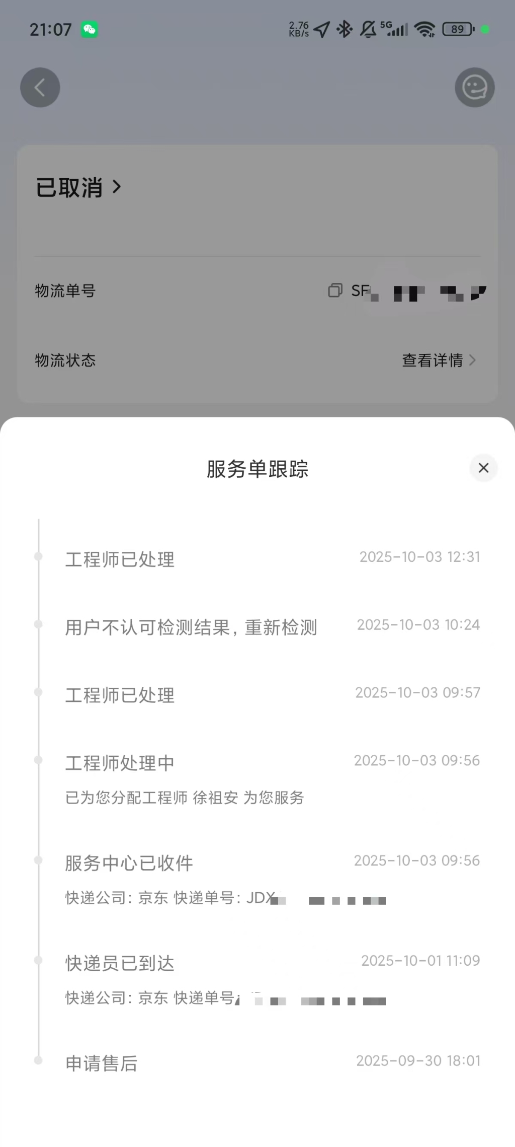 程先生表示,上网查询后他发现,部分用户虽然过保但仍获得了免费维修。于是他根据工作人员的要求提供了免费维修用户的订单号,但被告知“不同地区维修政策不同”,所以不能免费维修。
