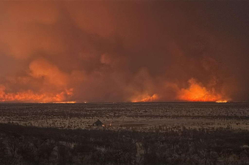 当地时间2025年9月28日,纳米比亚埃托沙国家公园,一场大火正在燃烧。大火已烧毁非洲最大野生动物保护区之一埃托沙国家公园三分之一的面积。视觉中国 图