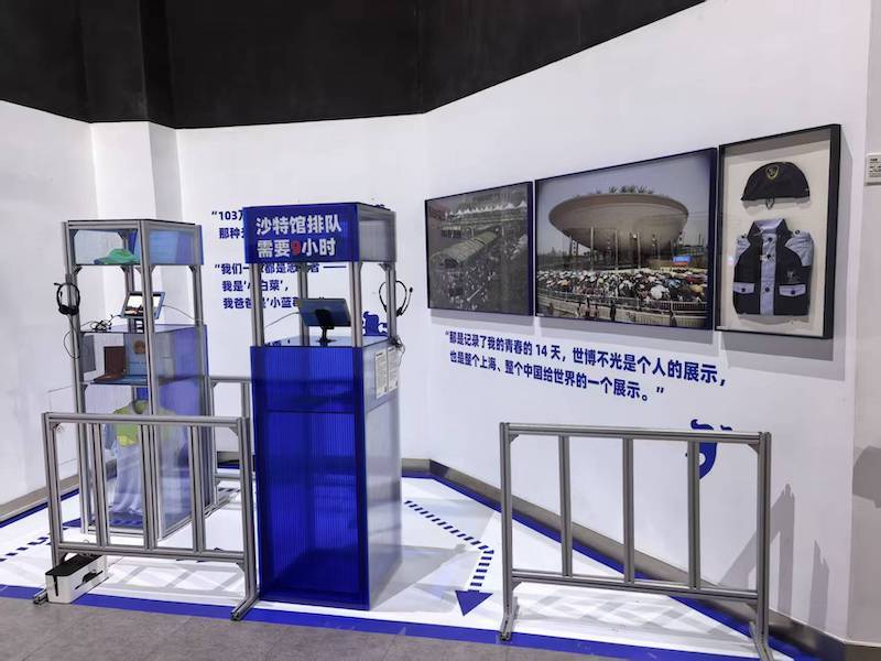 此次展览穿插分布于世博会博物馆的常设展厅之中,按口述者身份进行分组别,通过当年的世博会志愿者、世博会服务者(世博局工作人员、世博女兵、世博出租车司机等)世博会的游客以及世博动迁居民、世博研究者等生活因世博会发生巨大改变的市民的心声和他们提供的实物、照片等,呈现世博会在个体留下的独特印迹。