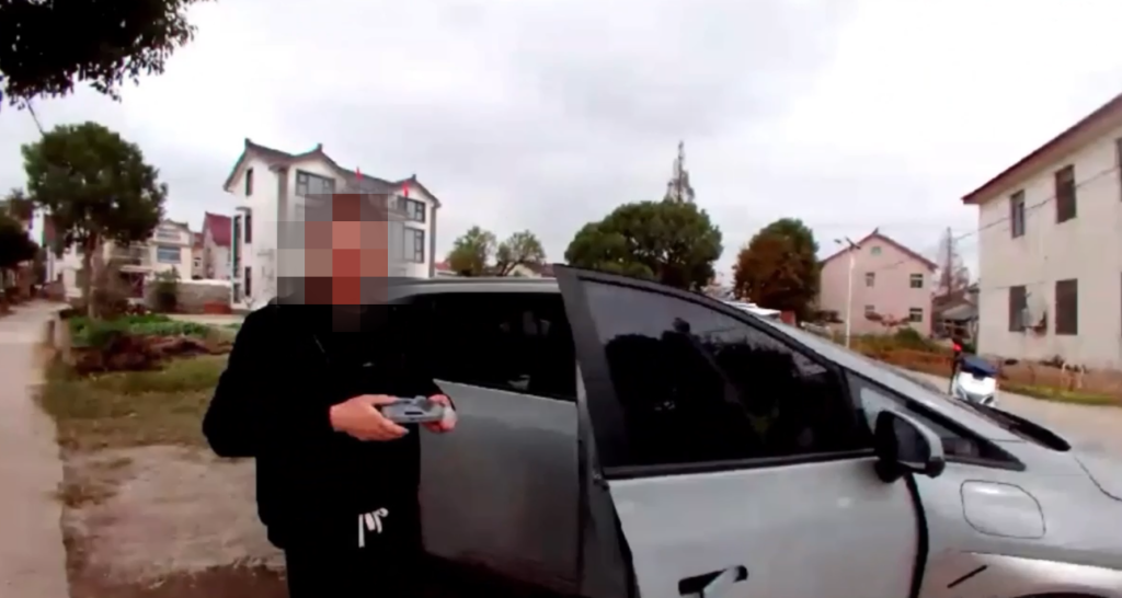 青浦分局金泽派出所民警现场处置“黑飞”无人机飞手陈某。上海市公安局供图