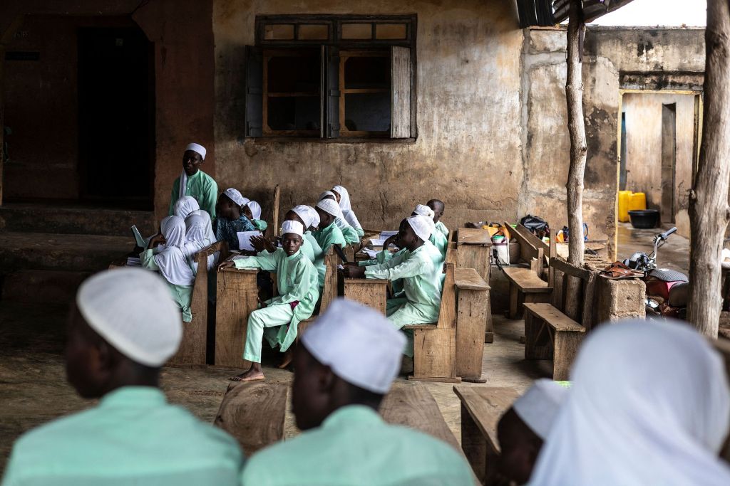 尼日利亚伊博奥拉,学生们在一所古兰经学校里接受教育。