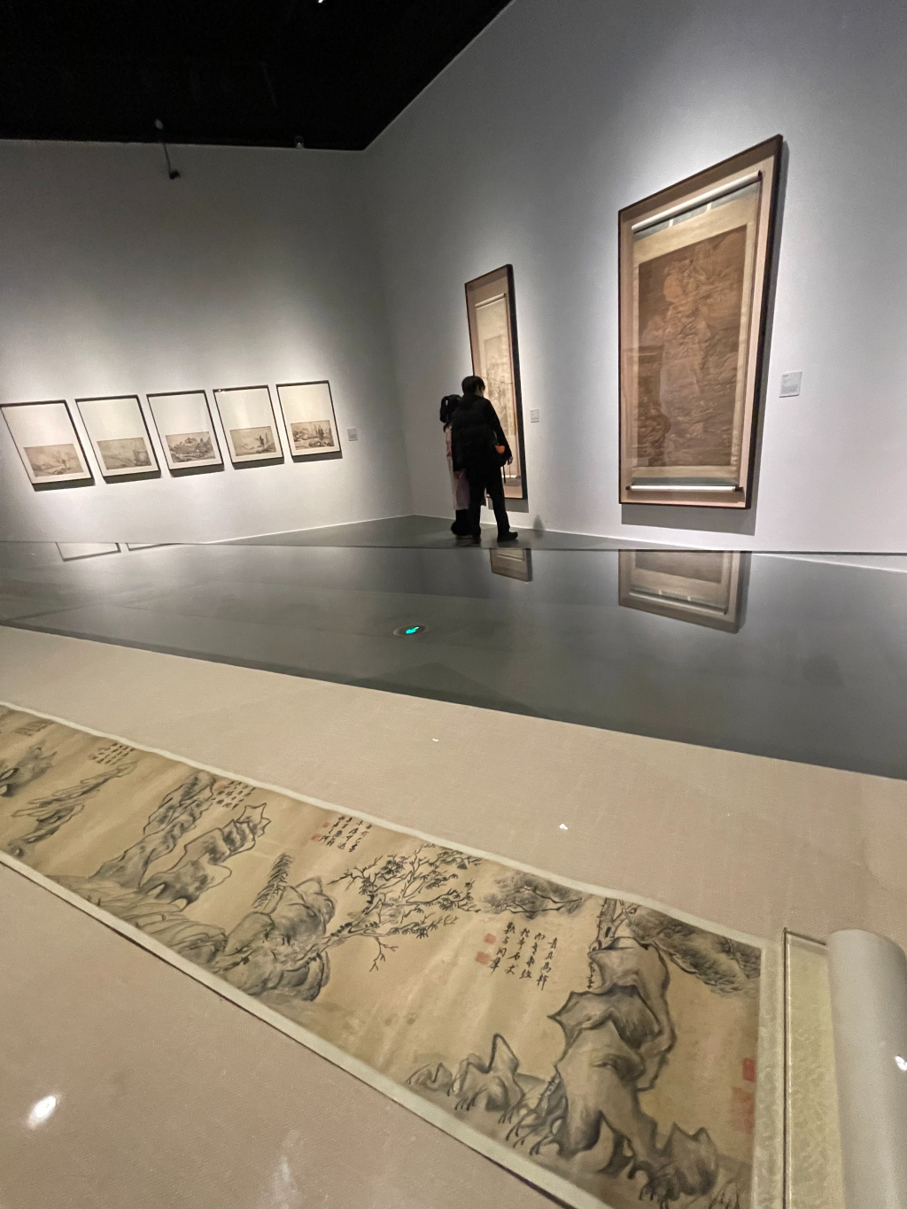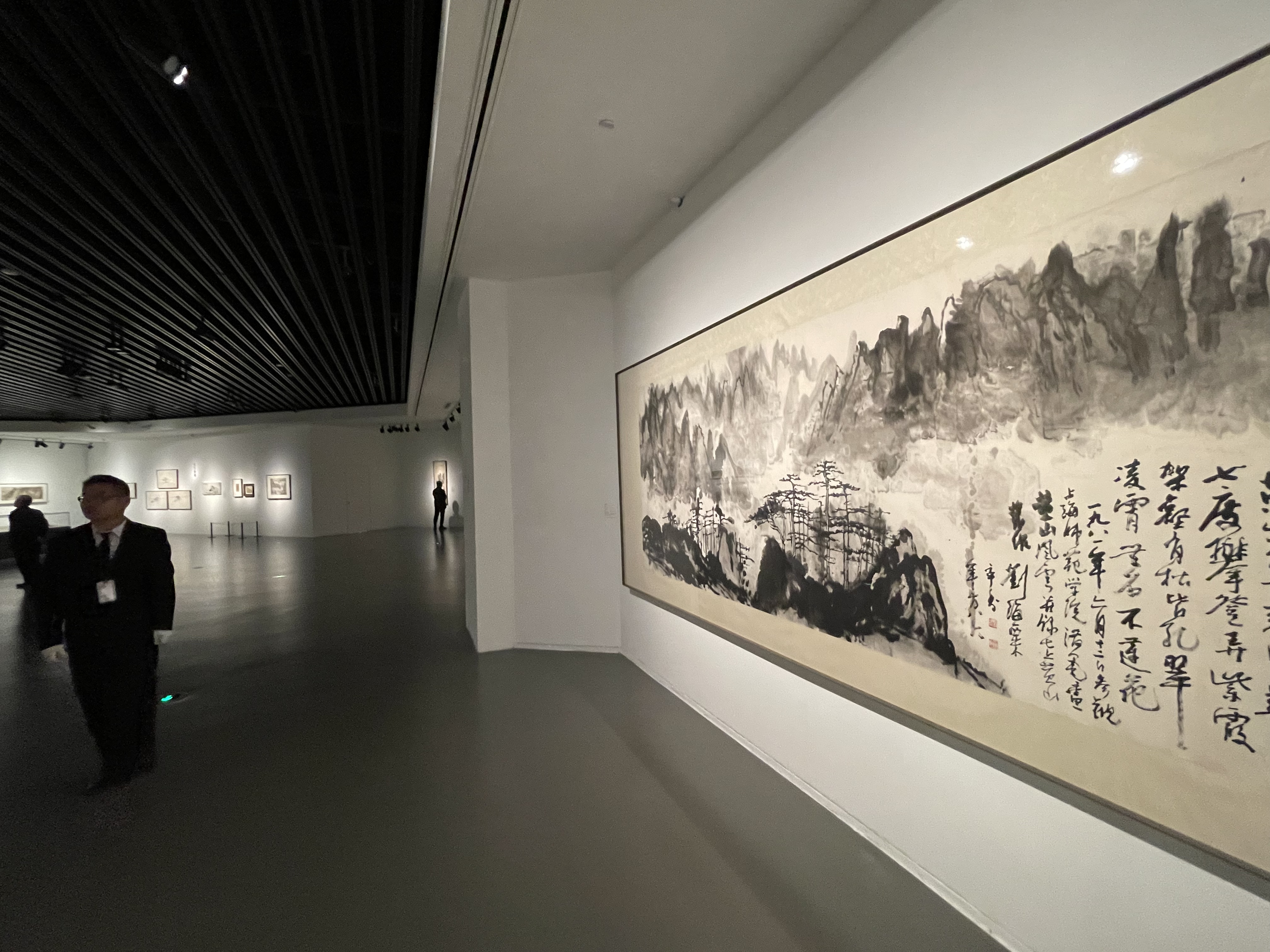 展厅同时展出了大量古代山水珍品,大多是刘海粟先生生前的珍藏,如五代巨然(传)的《茂林叠嶂图》、元代方从义 的《云山图》、明代沈周山水册页手卷等。