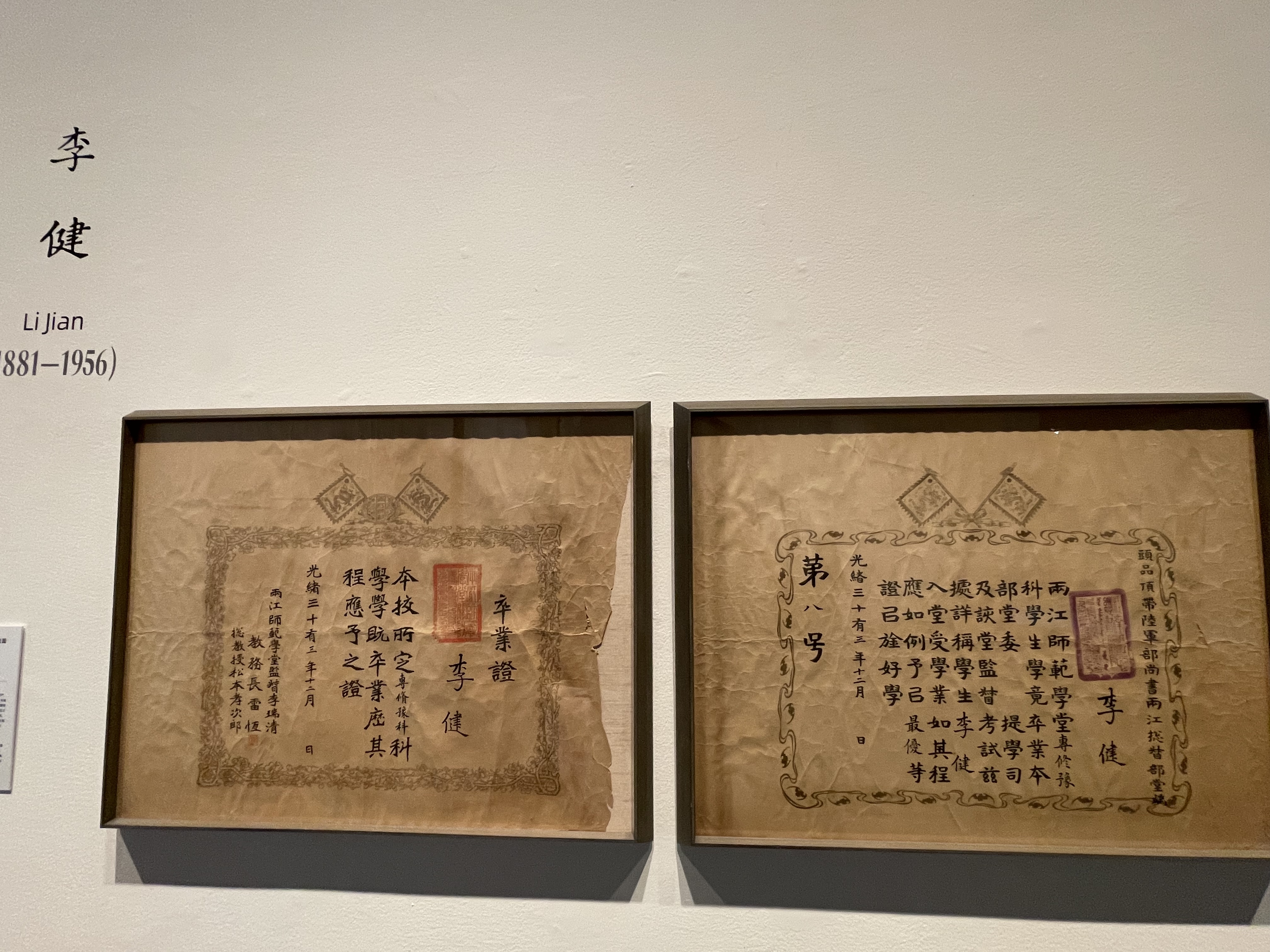 另一展厅的展墙上,萧俊贤(1865年—1949年)于两江师范学堂图画手工科授课的国画讲稿,正静静述说着中国现代美术教育“第一课”的开端。两江师范学堂(1906-1912)与刘海粟创办的上海美术专科学校(1912-1952)是中国近现代美术教育史上的两个关键节点,二者之间有着着一定的承启与发展关系。