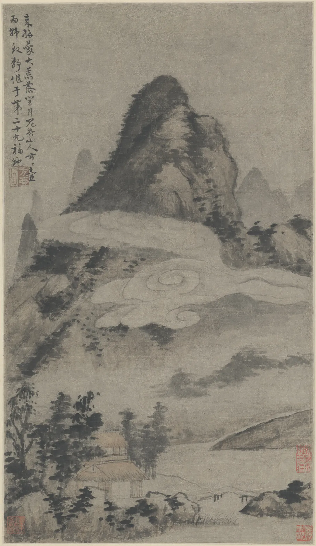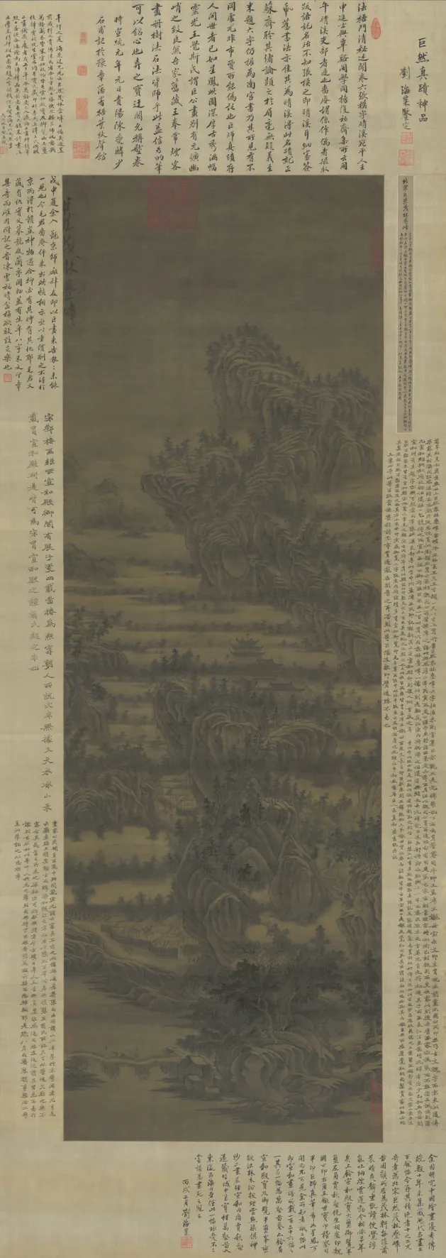 《茂林叠嶂图》巨然(传) 五代,绢本水墨 185×60.8cm刘海粟美术馆藏