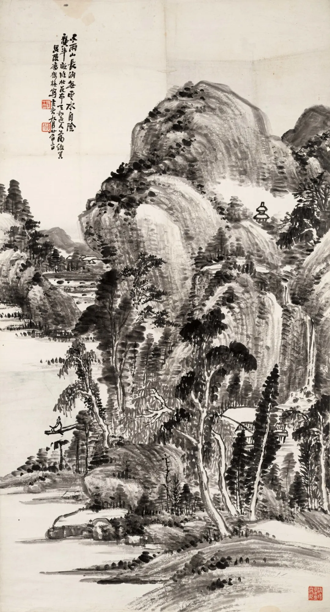 《山水图》萧俊贤 1923,纸本墨笔 150×81.5cm私人藏