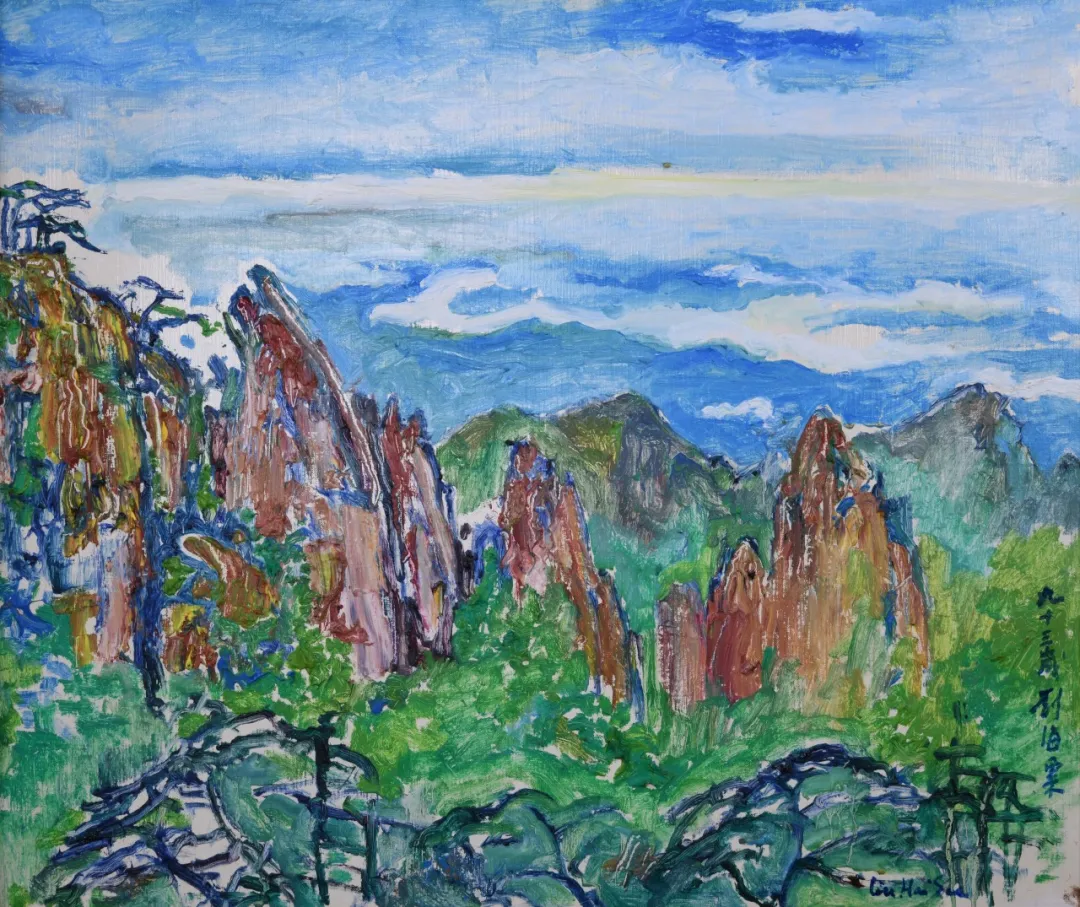刘海粟曾言:“黄山是我师,我是黄山友。” 这“师友”关系,道出了其艺术的真谛:他并非被动摹写黄山的外形,而是以全部的生命热情与东西方艺术资源,与黄山进行一场势均力敌的对话与创造。他在黄山看到了石涛的“一画”精神,更看到了与塞尚的结构、梵高的色彩相通的天地自然韵律。