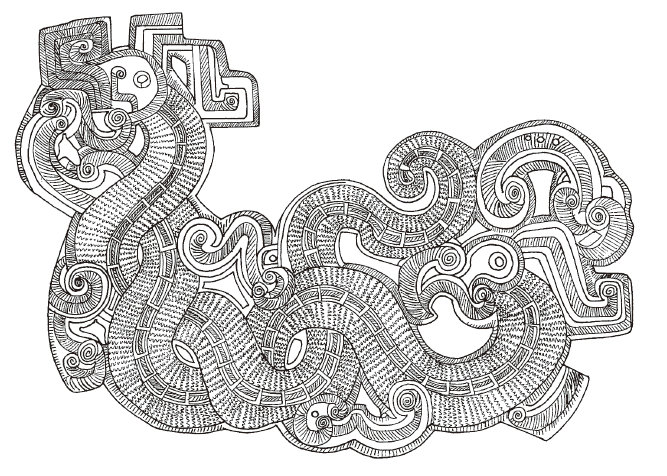 他的铠甲上还有虎形装饰,表面闪闪发光。这是对玉皇庙金虎的有力诠释。还有其他当地生产的小型金虎发现于楚国影响范围内的其他墓葬。老虎以凶猛地捕捉和吞噬猎物闻名,肯定也被视为祥瑞之物,因此其图案在青铜甲上使用,以确保给主人带来好运。虎似乎是一种异域时尚的引入,但它没有持续多久。由于黄金对中原贵族的吸引力不如玉石,虎随后在玉器中获得了全新的生命,由于它通常由玉璧上切下来的玉料制成,这在今天分散了人们对其北方来源的注意力。其受欢迎程度如此之高,以至于玉琥被《周礼》列为六器之一。草原上的金虎变成了玉琥,这是北方族群从黄土高原迁徙到定居状态时展现出的共生关系的明显例证。草原的基本文化元素被农耕文明吸收。在我们试图解读钟离君柏圆形墓葬的背景时,虎的形象是关键。