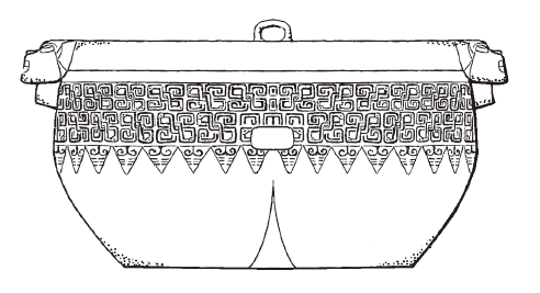 与陵墓的壮观规模相比,器物箱中的青铜器显得格外朴素。它们是从不同的来源搜集的:五件鼎,包含两种新器型,四件簠取代了早期的食器簋,以及两件令人印象深刻的酒器——罍。这两件罍通体装饰细腻的圆形纹饰,肩部有四个龙形附耳,足部则是镂空球状龙形,龙耳造型非同寻常。遍布器表的镂空装饰带增强了罍的视觉效果,这表明人们清楚地了解了礼仪性宴会所需的基本形式,可能是与南北方其他王侯接触的结果。钟离君柏有理由遵循共同的丧葬礼仪,但这看起来并不是他的首要任务。他更专注于发出信号以便与强大邻国结盟。青铜器包括编钟上的所有铭文都与钟离国周边各国的书法风格相似。有些作品甚至可能来自楚国铸造作坊,或者出自在钟离国工作的楚国工匠之手。
