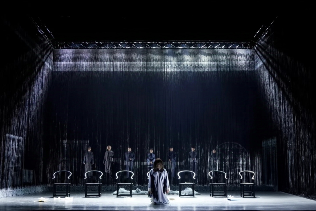 郭文景在西方歌剧框架中,创造性地融入丰富的民族音乐元素:唢呐、板胡等民族乐器与管弦乐交织;唱腔设计吸收山东茂腔、柳腔等地方戏曲韵味,甚至按高密方言音调谱写宣叙调;京剧的节奏和韵律也被巧妙化用,增强了戏剧张力。舞台视觉以矩阵构成的高粱墙和悬吊的弧形屏幕,构建出既写意又富有象征意义的空间。